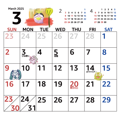 なおこのカレンダーは最初の罫線から作った完全オリジナルです。